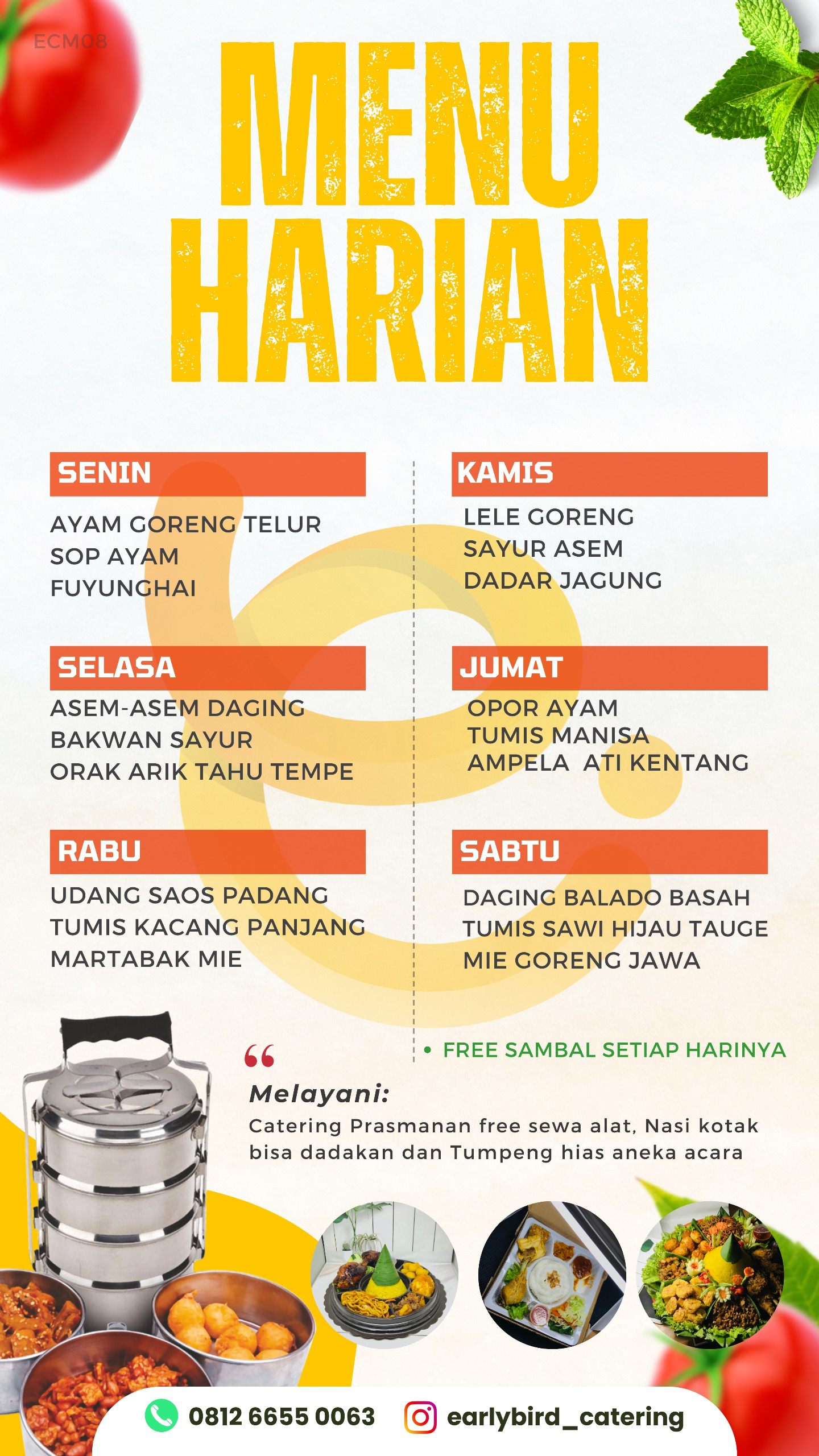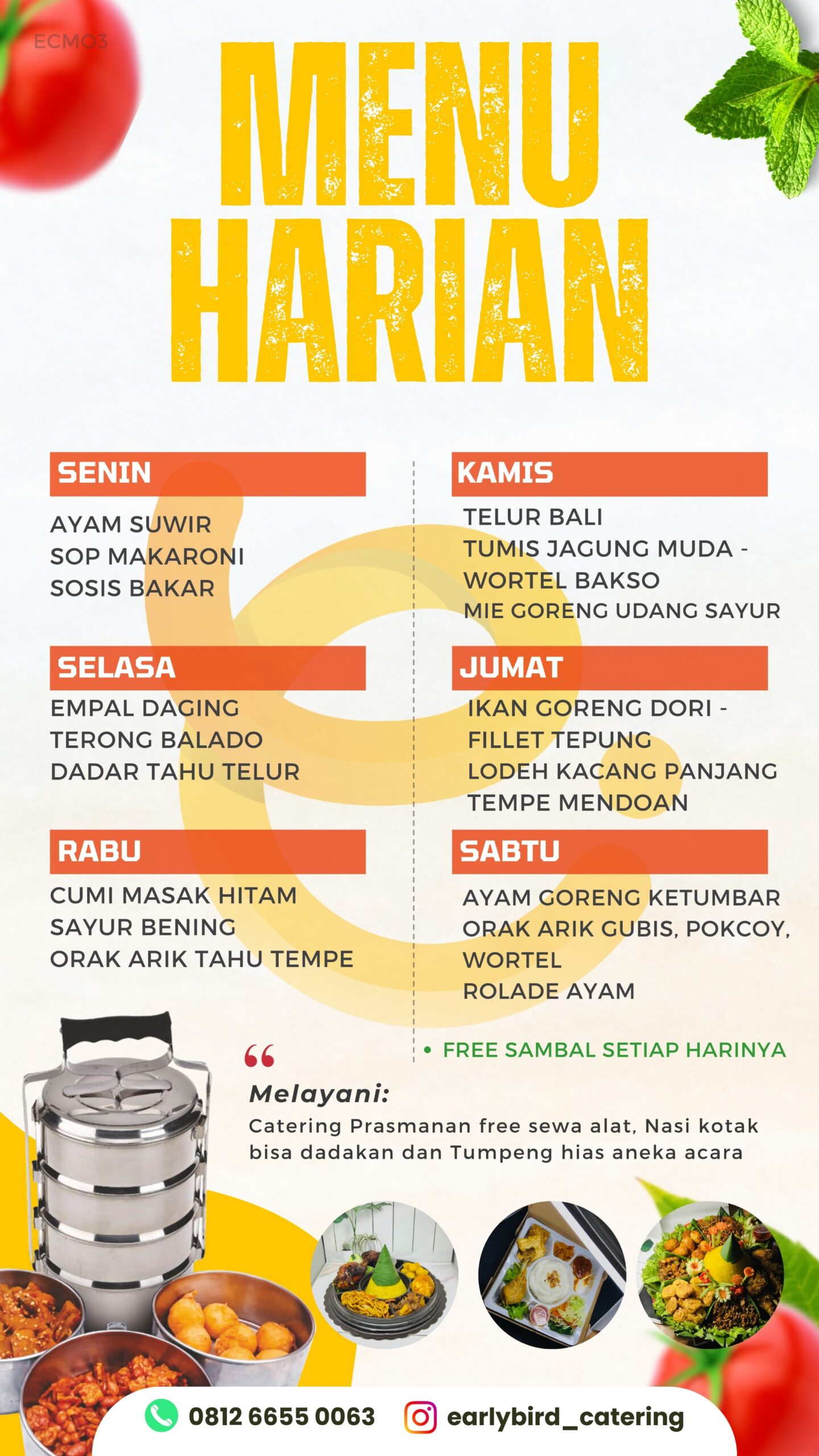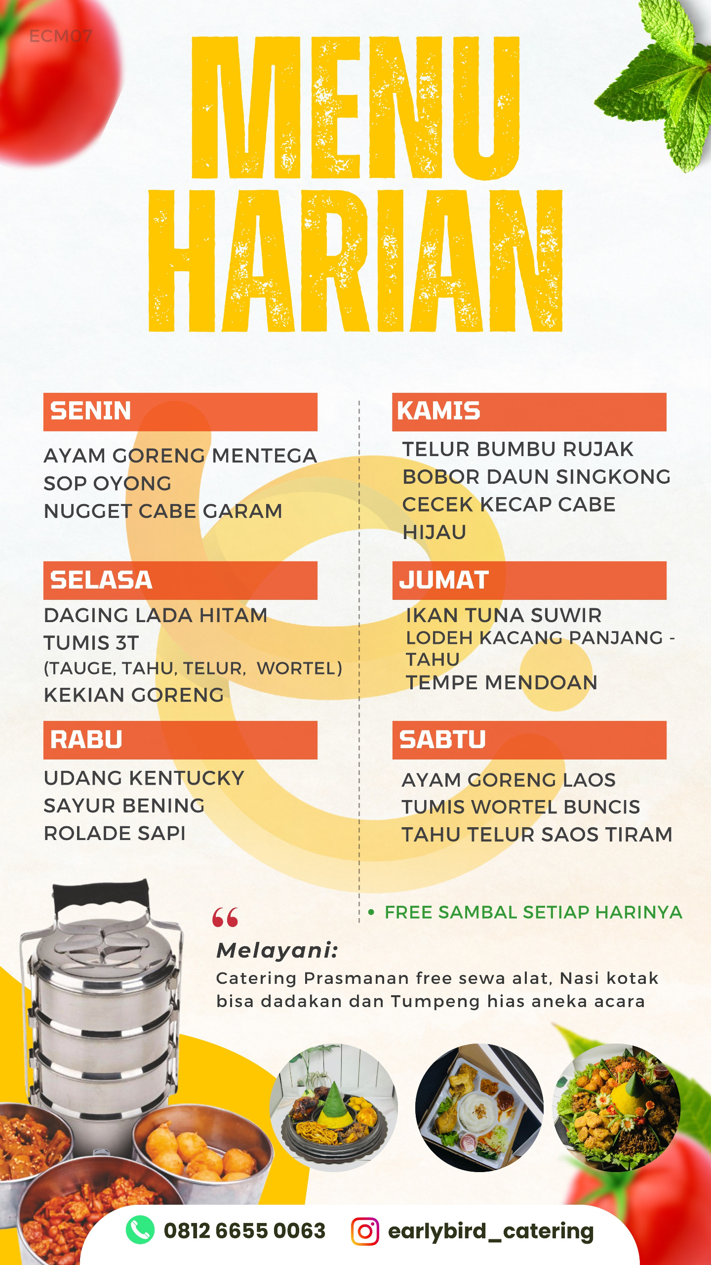 Serahkan ke ahlinya.. Early Bird Catering siap kirim pagi, siang dan sore ke rumah Anda GRATIS..!